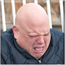He has light skin, a thin nose, straight hair and a round eye. These are the Caucasoid racial features.