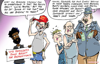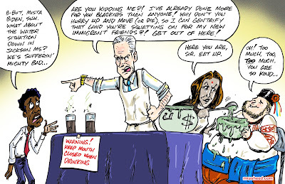 Rasheed, Muhammad. "Returning the Favor: Stabilizing White Wealth." Cartoon. The Official Website of Cartoonist M. Rasheed 07 Sep 2022. Permanent marker w/Adobe Photoshop color.
