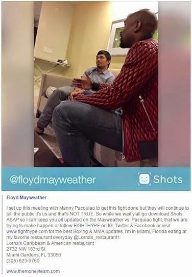 Arman Sustal - There is no assumption in the fact that Floyd doesn't want to fight Pacquiao. Floyd says Manny's pay per view numbers aren't there, yet Floyd flights Maidana...twice. You tellin' me that fight outdraws Pac v. Mayweather? Don't think Mayweather is afraid of Pac more than he is afraid of losing. He truly believes his legacy will be his undefeated record when in fact his legacy will be he never fought the best (arguably).
