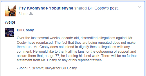 I agree with what he said, to a degree, but he can't run around with all of these allegations, having paid off at least one chick, and then act like this shit isn't real and didn't happen while at the same time telling other Black people to get THEIR shit together. We all can stand to improve something about ourselves, and it is that recognition of mutual imperfection that should tell a serial rapist to calm the fuck down on the chastisement and ridicule of others for their shortcomings.