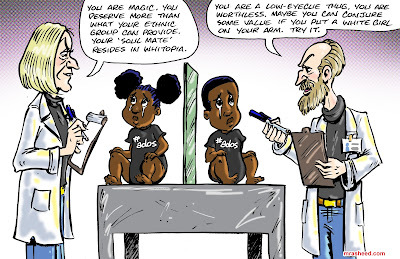 CITATIONRasheed, Muhammad. "Racist Scars of Invasive Social Engineering Procedures." Cartoon. The Official Website of Cartoonist M. Rasheed 25 Feb 2022. Pen & ink w/Adobe Photoshop color.
