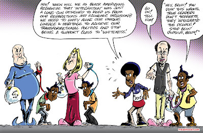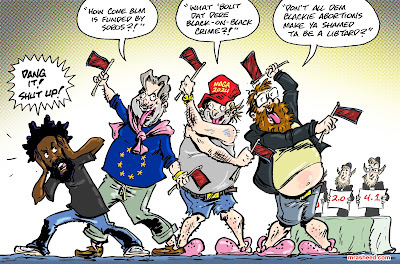 Rasheed, Muhammad. "Weaponized Semantics Games for Racism & Profit." Cartoon. The Official Website of Cartoonist M. Rasheed 16 Jan 2022. Pen & ink w/Adobe Photoshop color.