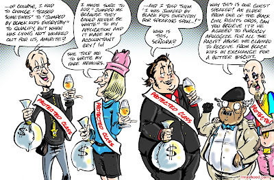 CITATIONRasheed, Muhammad. "Tangible Benefits of an Honorary 'Whiteness.'" Cartoon. The Official Website of Cartoonist M. Rasheed 20 Jan 2022. Pen & ink w/Adobe Photoshop color.