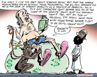 Muhammad Rasheed - Tom wrote: "the whole idea that there's some kind of bullshit imaginary contract with my invisible person is ridiculous."