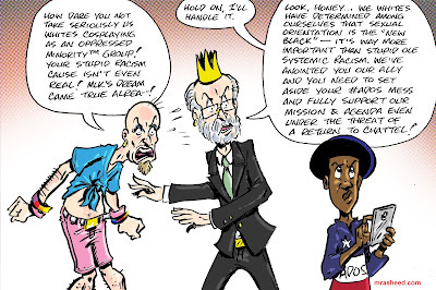 Rasheed, Muhammad. "A Perfect Excuse to Give Whites More Gibs." Cartoon. The Official Website of Cartoonist M. Rasheed 09 Jan 2022. Pen & ink w/Adobe Photoshop color.