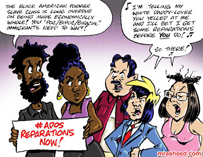 Rasheed, Muhammad. "Failing to Understand the Terms of Your Own Racial Contract." Cartoon. The Official Website of Cartoonist M. Rasheed 19 Dec 2021. Pen & ink w/Adobe Photoshop color.