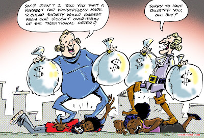 Rasheed, Muhammad. "Secular Paradise as Advertised." Cartoon. The Official Website of Cartoonist M. Rasheed 14 Dec 2021. Pen & ink w/Adobe Photoshop color.