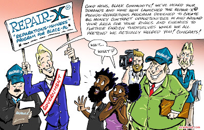 Rasheed, Muhammad. "America's Cyclic, Lineage-Based, Racist Long-Con." Cartoon. The Official Website of Cartoonist M. Rasheed 22 Dec 2021. Pen & ink w/Adobe Photoshop color.