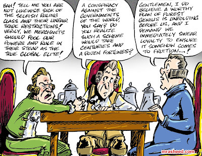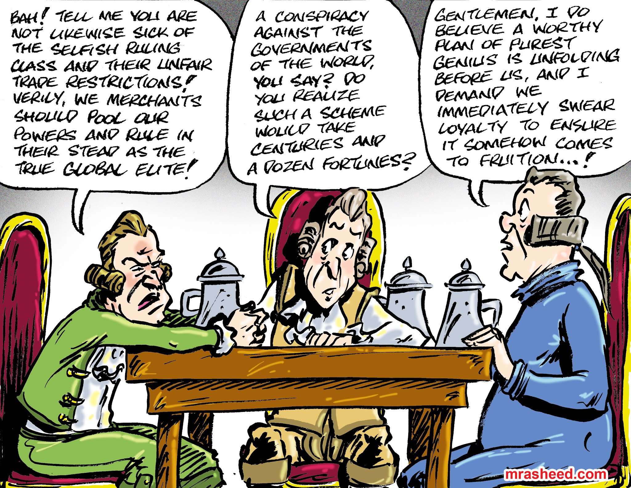 ARTIST'S DESCRIPTIONThis #MRasheedCartoons image was inspired by the ample evidence in the historical record -- starring ambitious figures from Adam Weishaupt to Jakob Fugger to Jeff Bezos -- of the total usurpation of populace rule by the greediest, most corrupt group in human history: the 1% corporate monopolist elite. My middling white racist opponents enjoy playing down (or ignoring) certain aspects of the historical record to promote their stupid "divine-evolved white people pagan religion" ideology as if it holds any kind of relevance outside of their batshit crazy fantasy justification for the dominant group's evils, but I have zero problems tossing that sh*t on top of the pile, too, since I see with a great deal more clarity from my ethnic group's artificially-induced wealthless bottom caste position.