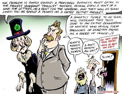 ARTIST'S DESCRIPTIONThis #MRasheedCartoons image was inspired by the fact that the colossal ignorance displayed by the white racist aristocracy comes from them thinking that whatever nonsense they allow to spew from their faces is magically true just because they said it -- a belief that self-reinforces their commitment to dismissing the actual scholarship on the subject, freeing them from the work of actually reducing their ignorance levels.