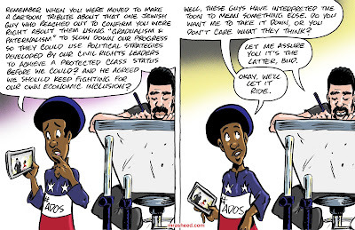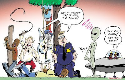 ARTIST'S DESCRIPTIONThis #MRasheedCartoons image was inspired by the middling white racist and his continuous efforts to explain that the lineage-based systemic economic oppression had nothing at all to do with the gentile white supremacists over the last 400 yrs, but was all the fault of the Jews. I'm supposed to simply forget the fact that it was their political identity who have not only also slave holders, but also overseers, slave breakers, slave takers, bounty hunters, correctional officers, 'Law & Order' police officers and savage lynch mobs, all enthusiastically helping to maintain the systemic integrity of the white racist aristocracy by subjugating the Black American former slave class for continued exploitation & plunder. Another big part of the guardianship of white racism against the American Descendants of Slavery is they never, ever stop lying.