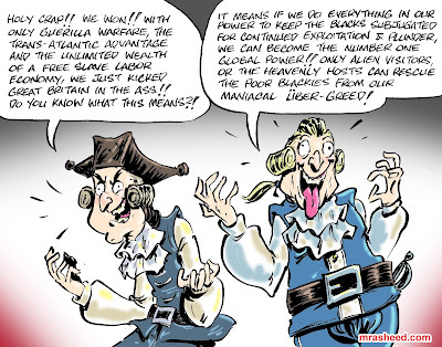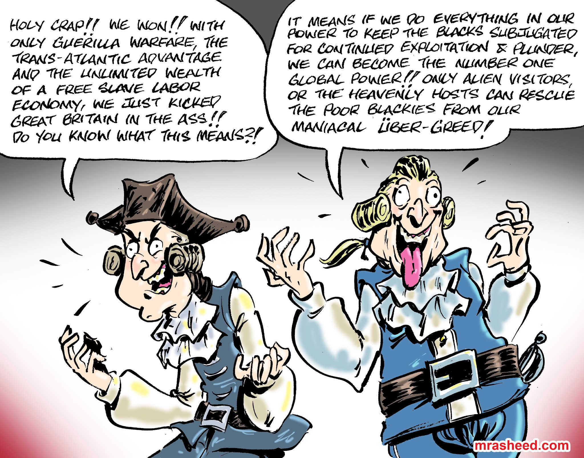 Rasheed, Muhammad. "The Self-Serving White Redefinition of 'Black' as 'Slave.'" Cartoon. The Official Website of Cartoonist M. Rasheed 25 Aug 2021. Pen & ink w/Adobe Photoshop color.
