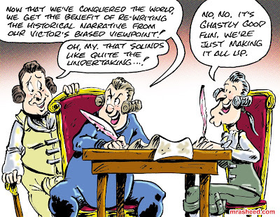Rasheed, Muhammad. "Study of the Past Through the Fog of Lies." Cartoon. The Official Website of Cartoonist M. Rasheed 24 Aug 2021. Pen & ink w/Adobe Photoshop color.