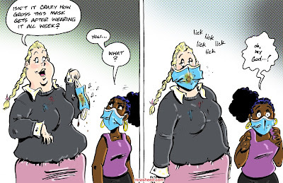 Rasheed, Muhammad. "The Screeching Whine of Raw & Uncut White Privilege." Cartoon. The Official Website of Cartoonist M. Rasheed 24 Aug 2021. Pen & ink w/Adobe Photoshop color.