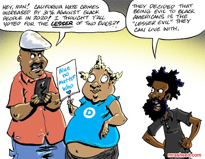ARTIST'S DESCRIPTIONThis #MRasheedCartoons image was inspired by a brief Tweet back-n-forth I engaged in discussing this AP News article, combined with 2020's display of hard-headed Black people dancing in the streets after enthusiastically "getting Trump out" by giving their votes up for free to Team Mass Incarceration Biden/Harris. #boooooo
