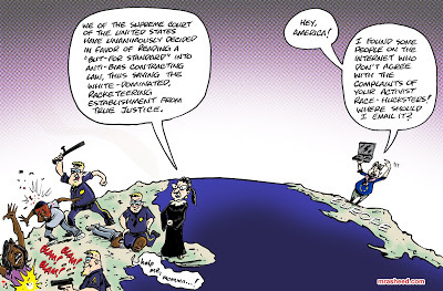 Rasheed, Muhammad. "The Dubious Value in Ignorant, Long-Distance, Racism Support." Cartoon. The Official Website of Cartoonist M. Rasheed 15 Jul 2021. Pen & ink w/Adobe Photoshop color.