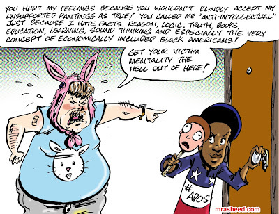 ARTIST'S DESCRIPTIONThis #MRasheedCartoons image was inspired by this guy's pseudo-brave, after-the-fact comment made at the lurkersphere once he had safely banned me from a certain message board so he wouldn't have to actually engage. Ironic, considering the cowardly spirit in which he banned me was actually because he was feigning victimization since he didn't know how to argue.