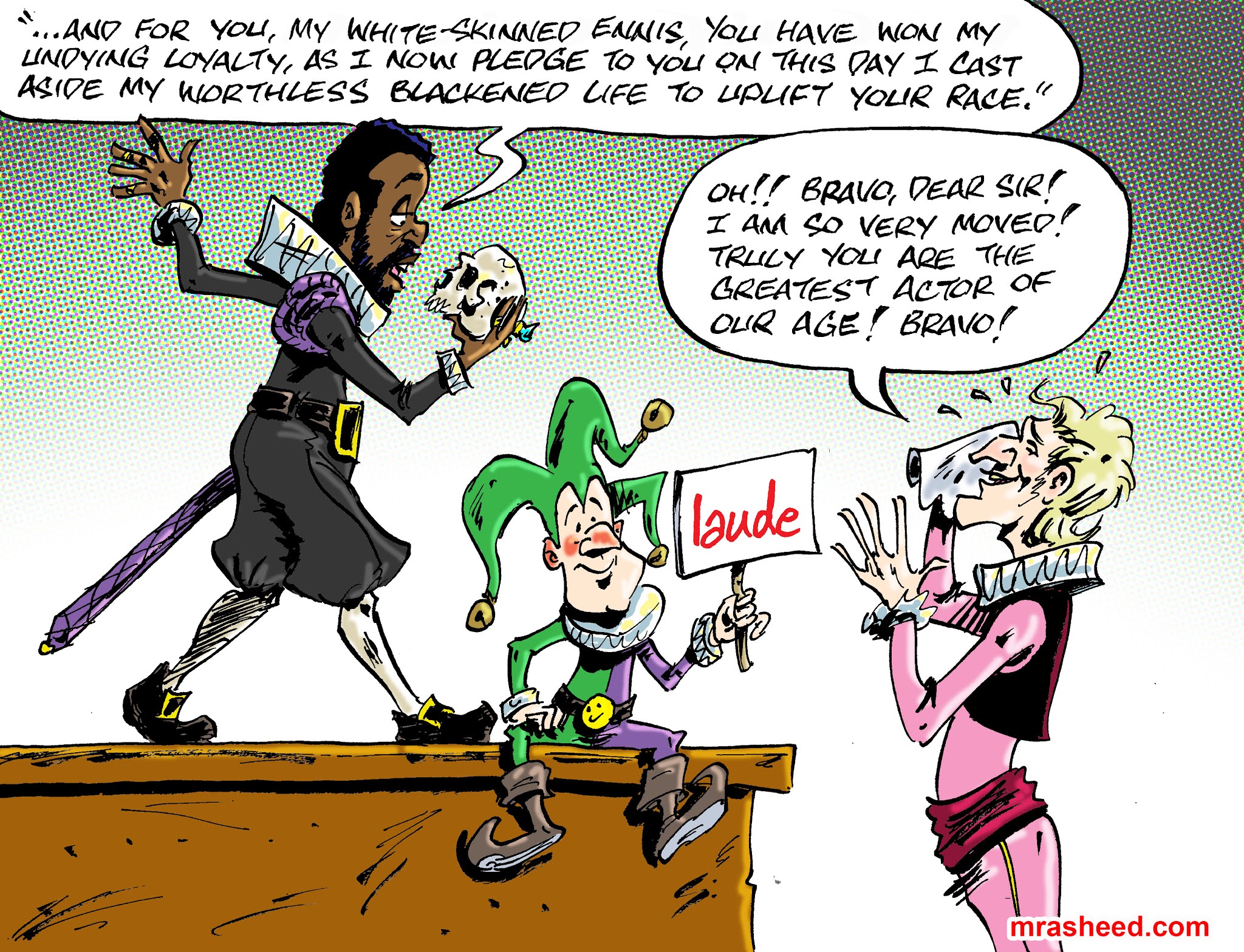 This #MRasheedCartoons image was created as the cover illustration to a brief dialog I participated in on LinkedIn (excerpted below). Someone gave over-the-top praise to Alfonso Ribeiro over a particular scene where he asserted his right to his ‘Blackness’ as a conservative, which is fine. But the legion of demonstrably racist white racists who enthusiastically proclaimed him to be the best actor in the entire show (if not the universe) because of that one scene, showed their ridiculous biases on full display.