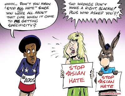 "Always remember how 'Stop Asian Hate' was never met with 'Stop All Hate' etc from white people and everyone responsible for continuing anti-blackness today as it negatively affects native black Americans. Very revealing and extremely important political comparison."The dominant political identity group and their loyal immigrant support class use the civil rights activist tactics and strategies of the American Descendants of Slavery to create new free handouts for themselves. They've usurped government & industry to pat themselves on the back and reward themselves with stolen ADOS inheritance wealth and American tax dollars with impunity.
