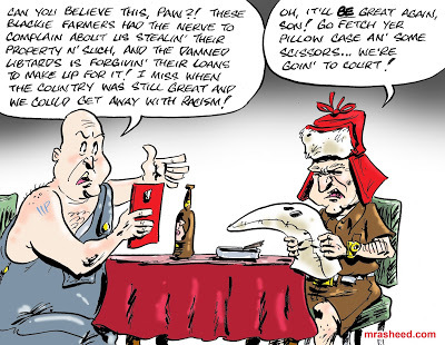 ARTIST'S DESCRIPTIONThis #MRasheedCartoons image was inspired by this article about predatory white people having a fit over just the idea that the US gov would side with their prey after complaints of racism. The gov is forging loans of the victims as part of a reparatory process, and the diabolical, greed-fueled whites who caused the problems in the first place are suing because their systemic racist schemes made sure to make the laws wishy-washy enough to enable them to legally steal a portion of that loan forgiveness deal for themselves. That's of course the entire point of their "skin color" politics double-talk and refusal to support any specificity policies that they can't also dip their stealing-ass fingers in. For example, the part of the article that stood out most to me was this: