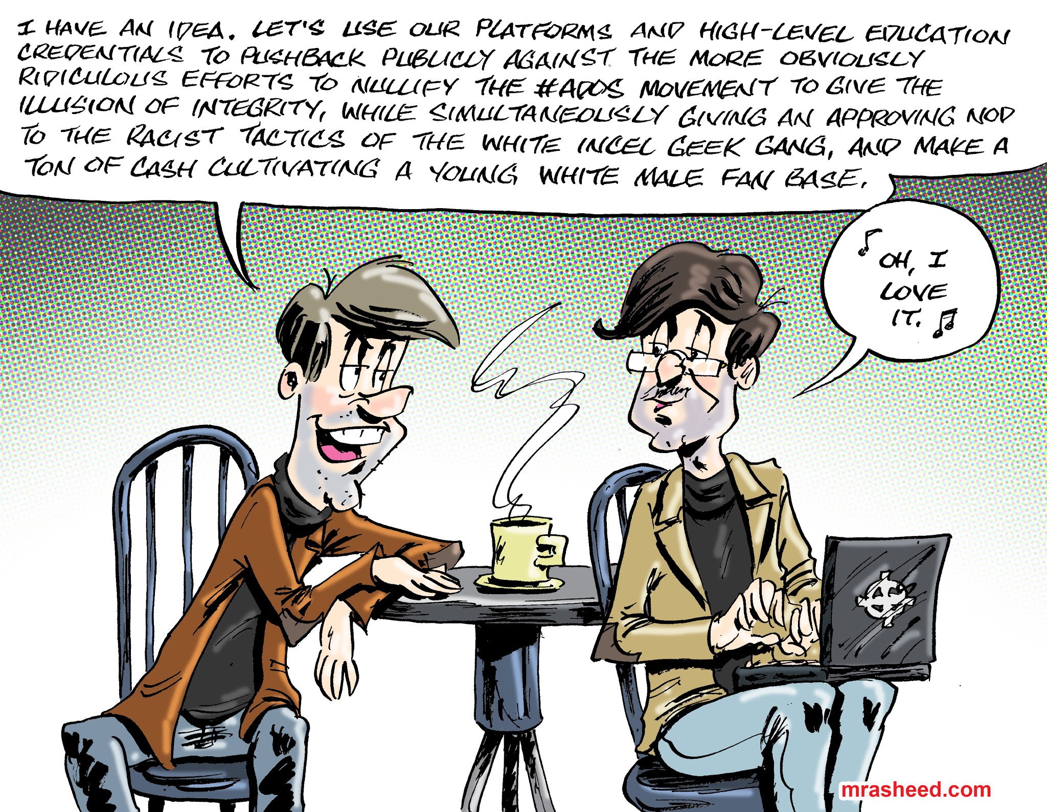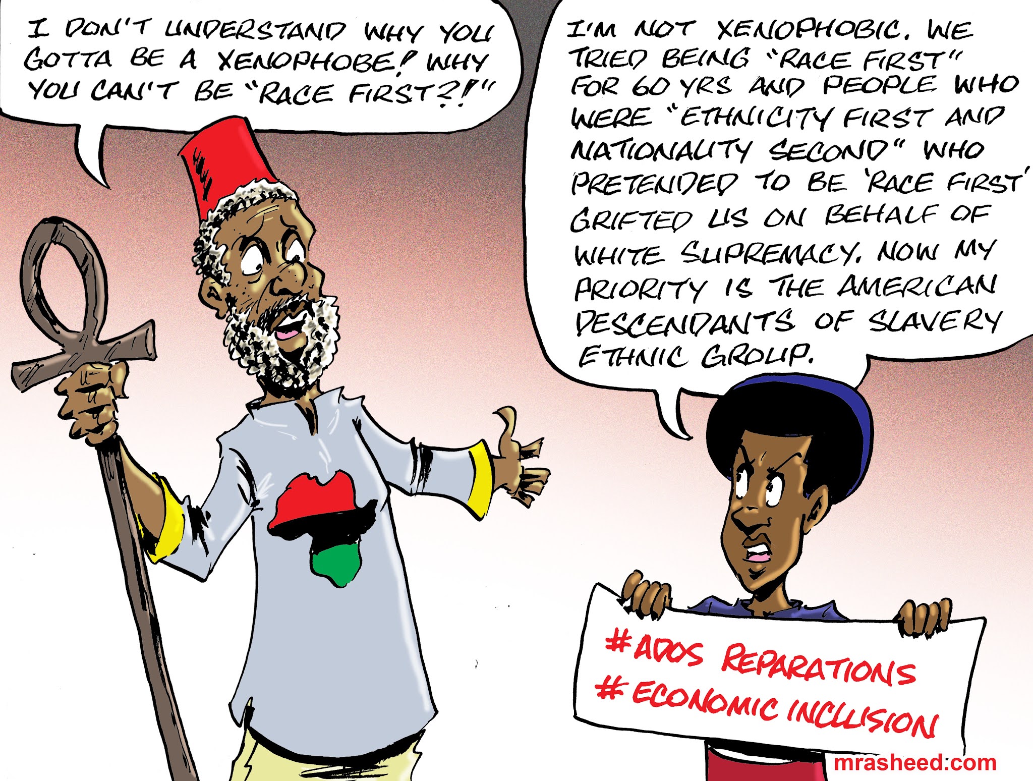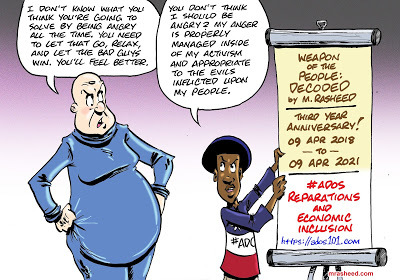 Rasheed, Muhammad. "And Now ADOS is Awake #LineageMatters." Cartoon. The Official Website of Cartoonist M. Rasheed 05 Apr 2021. Pen & ink w/Adobe Photoshop color.