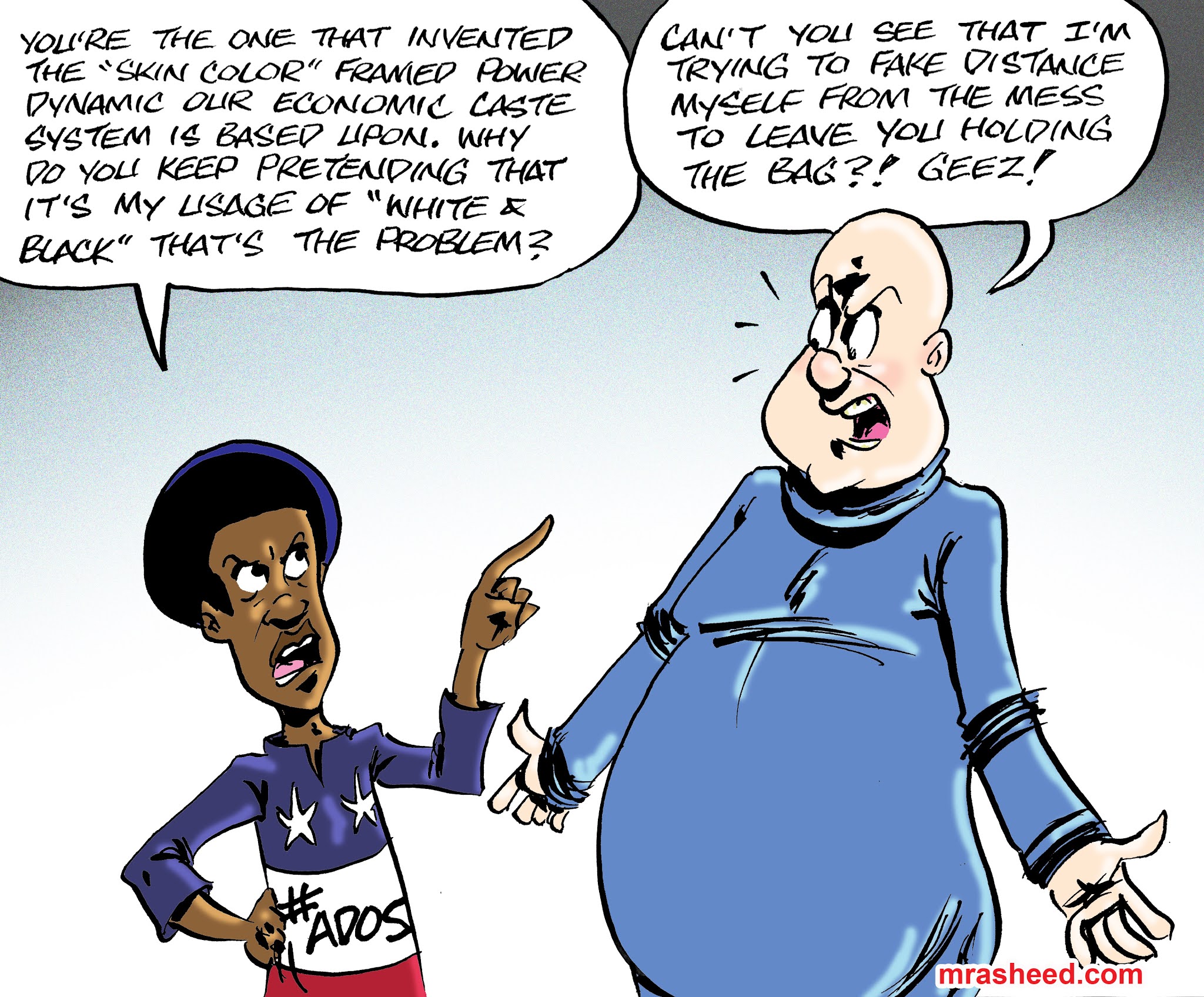 Rasheed, Muhammad. "Carrying Over the Negro Problem into the 21st Century." Cartoon. The Official Website of Cartoonist M. Rasheed 15 Mar 2021. Pen & ink w/Adobe Photoshop color.