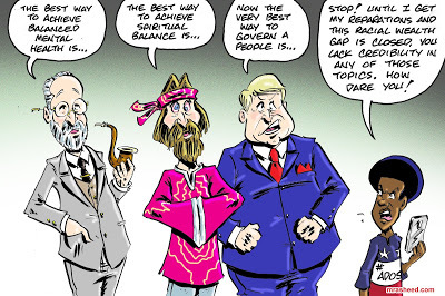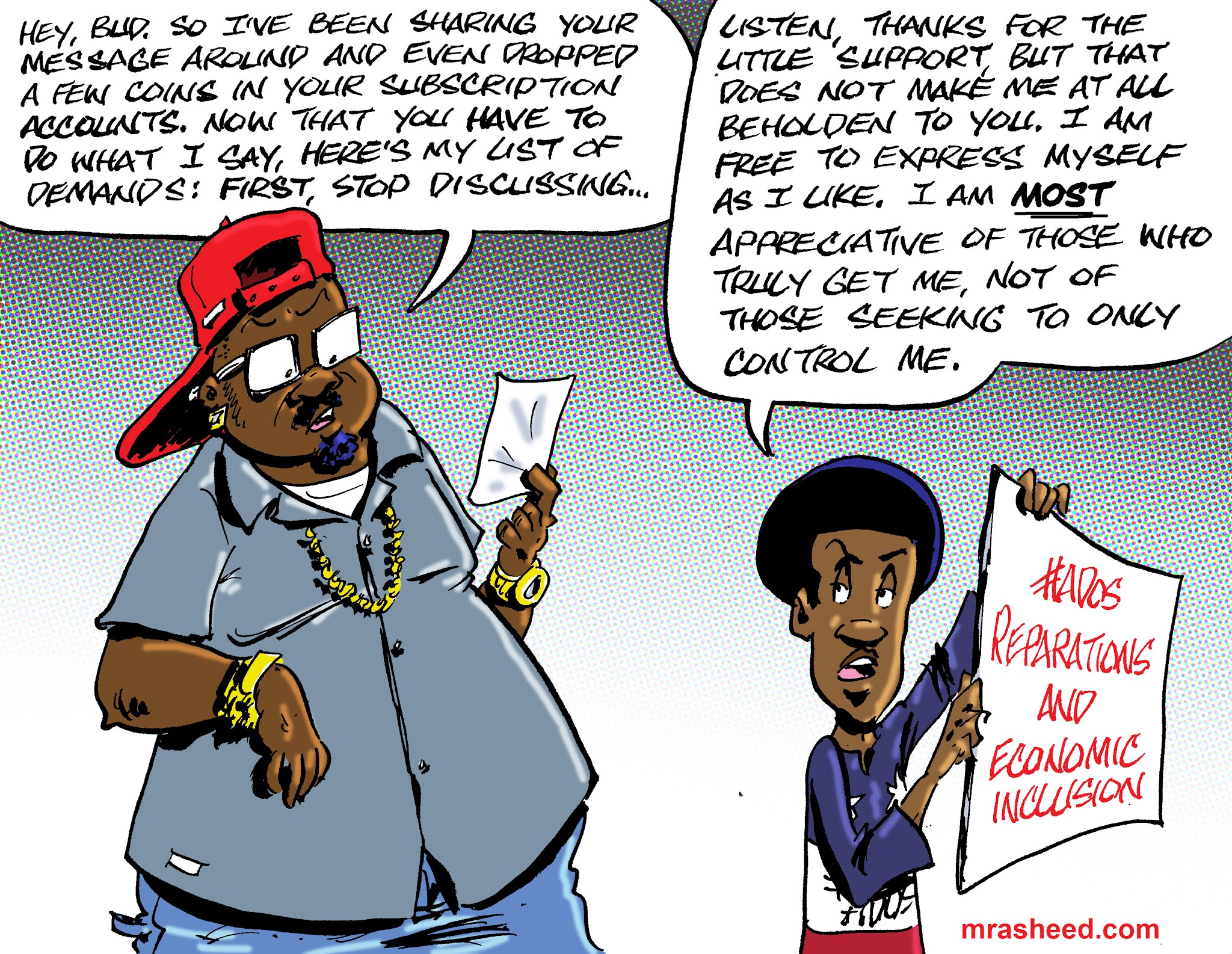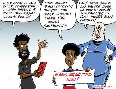 Rasheed, Muhammad. "Any Dirty Trick to Keep From Paying My Reparations." Cartoon. The Official Website of Cartoonist M. Rasheed 22 Mar 2021. Pen & ink w/Adobe Photoshop color.