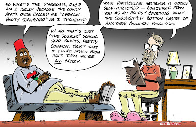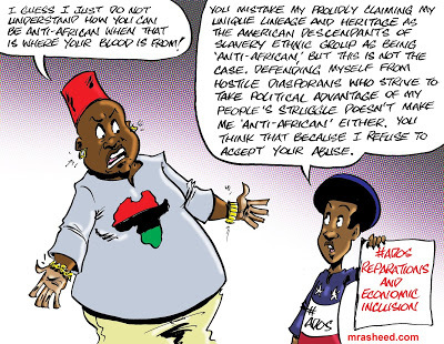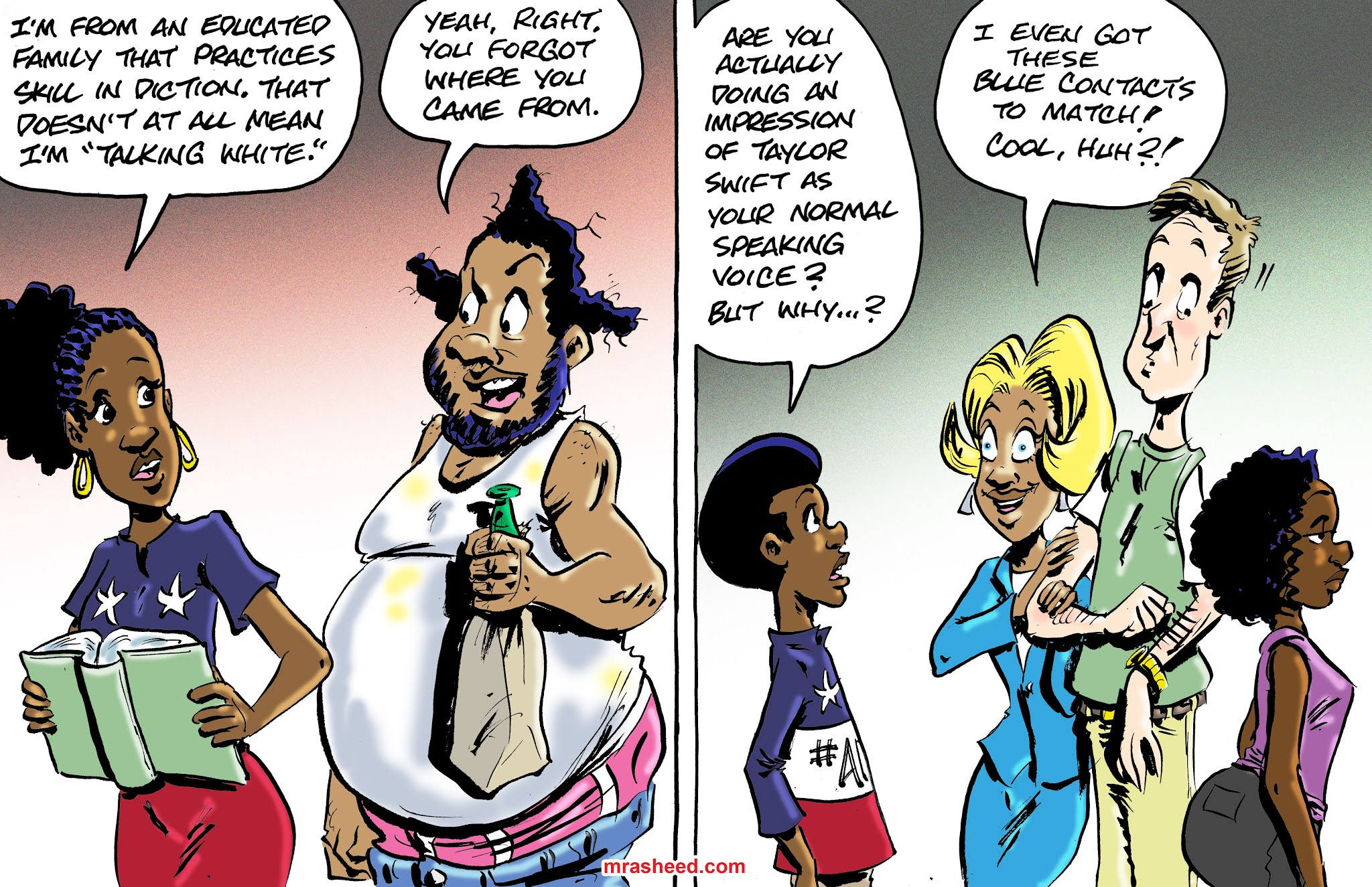 Rasheed, Muhammad. "'Flat Blackness' isn't the Opposite of 'Whiteness'." Cartoon. The Official Website of Cartoonist M. Rasheed 11 Mar 2021. Pen & ink w/Adobe Photoshop color.
