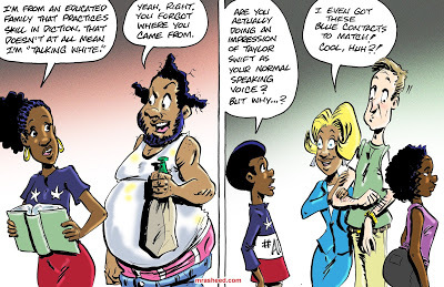 Rasheed, Muhammad. "Racism's Shady Doublespeak." Cartoon. The Official Website of Cartoonist M. Rasheed 15 Mar 2021. Pen & ink w/Adobe Photoshop color.