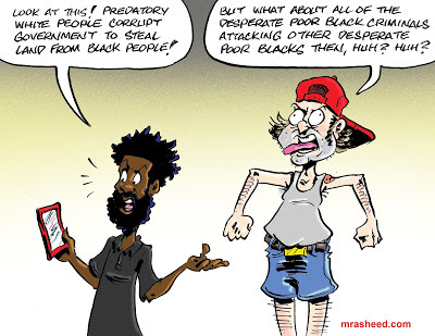 Muhammad Rasheed - So in your mind, desperate poor Black criminals fighting each other is much worse than predatory criminal white people corrupting a government to steal non-criminal Black land.