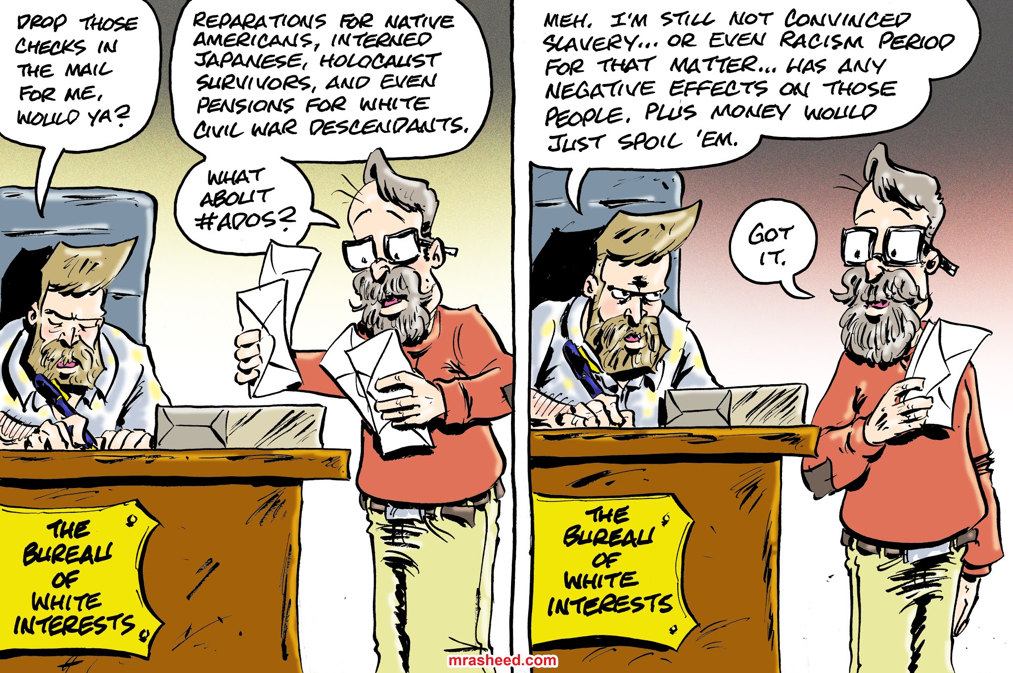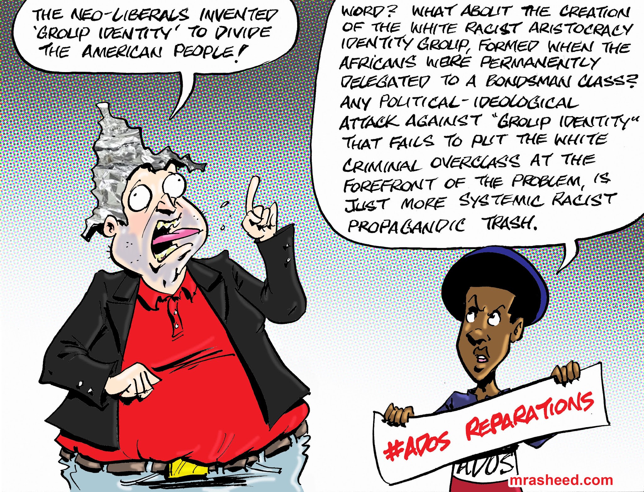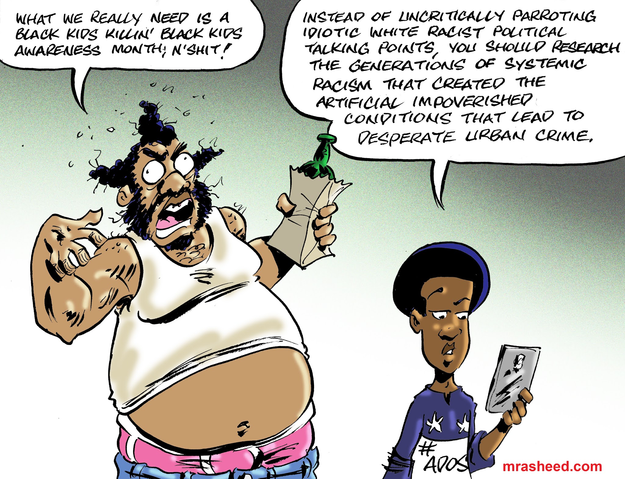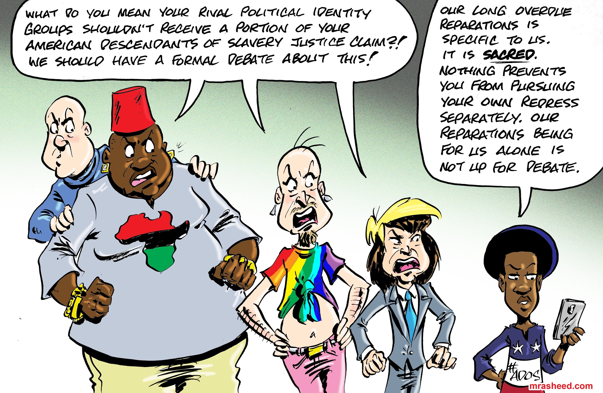 Rasheed, Muhammad. "The True Nature of the False 'Xenophobia' Charge Against #ADOS." Cartoon. The Official Website of Cartoonist M. Rasheed 21 Feb 2021. Pen & ink w/Adobe Photoshop color.