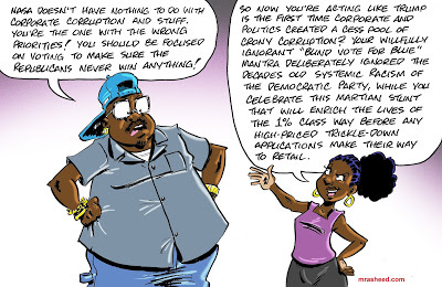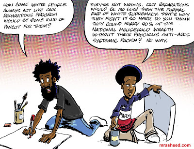 Rasheed, Muhammad. "Hidden Within the Fake Woke." Cartoon. The Official Website of Cartoonist M. Rasheed 23 Feb 2021. Pen & ink w/Adobe Photoshop color.