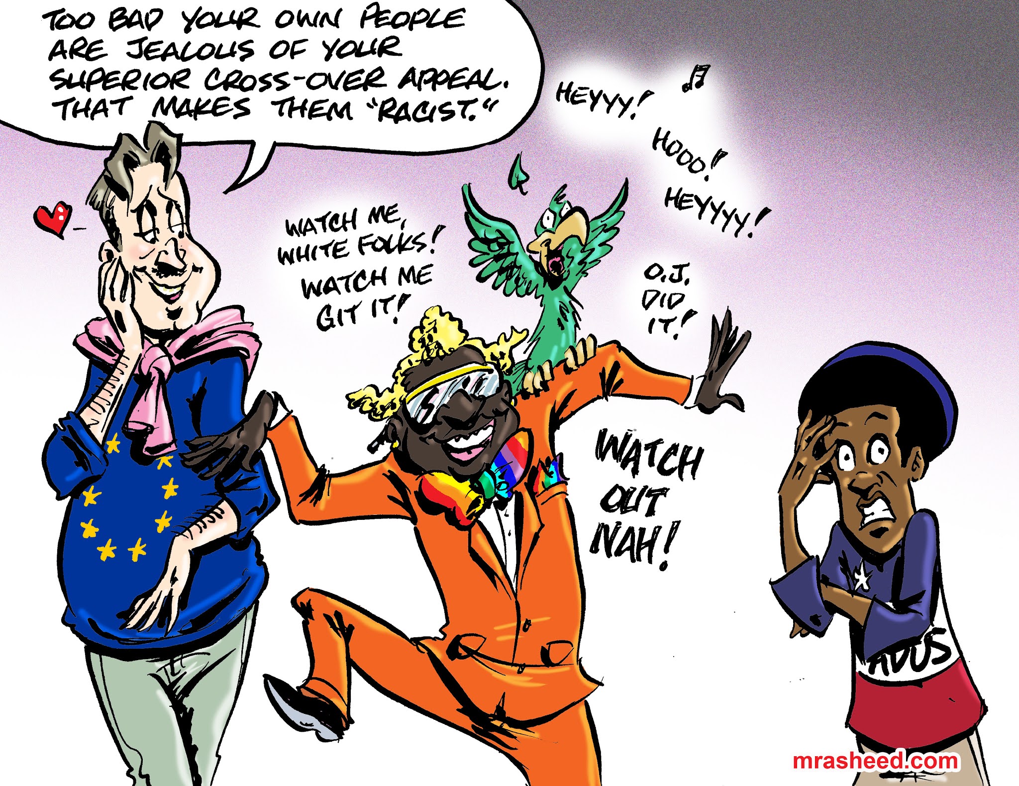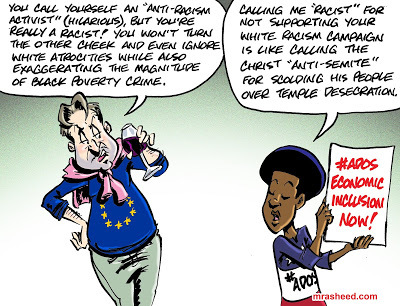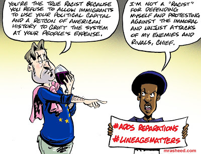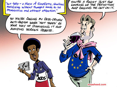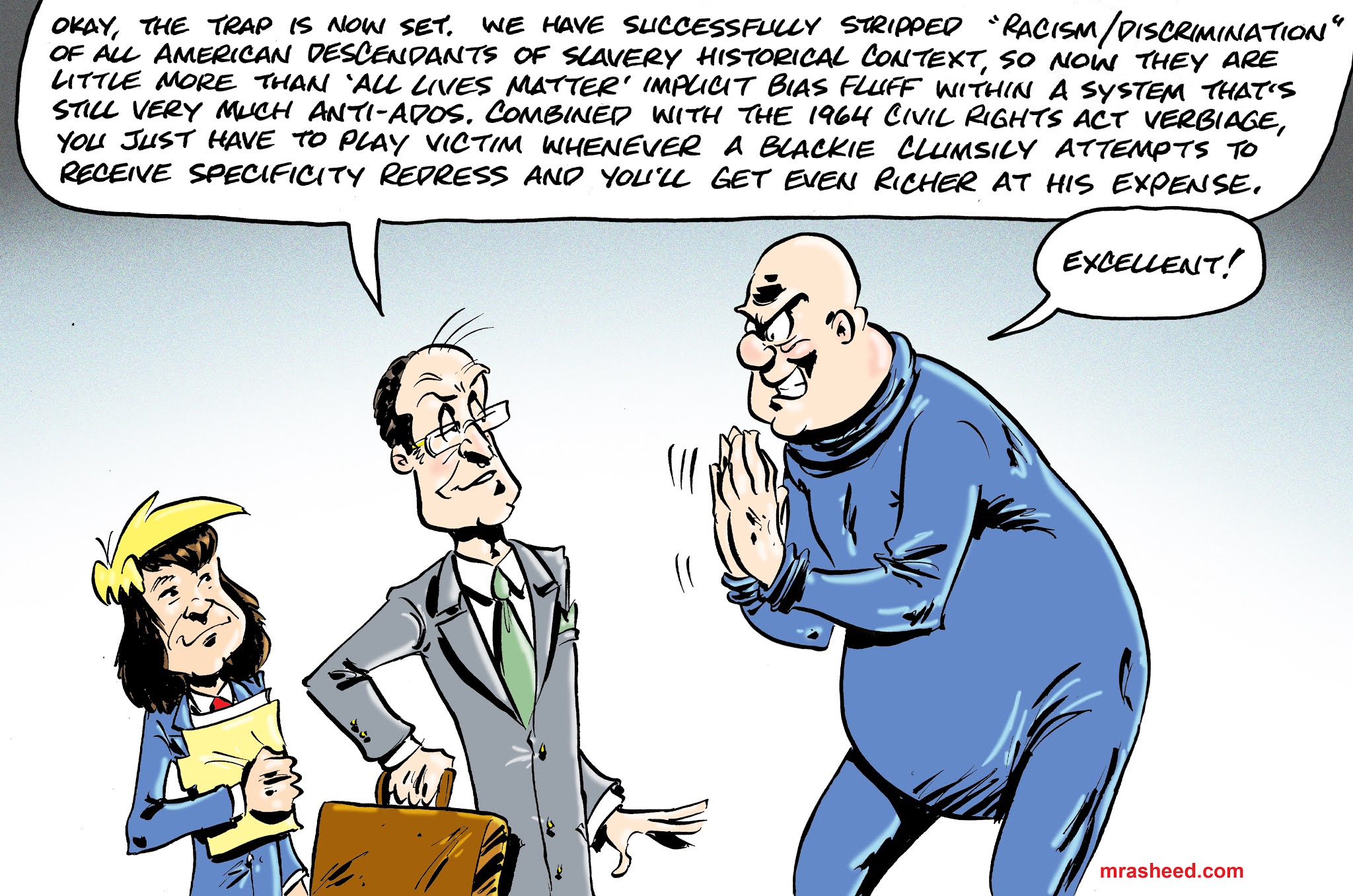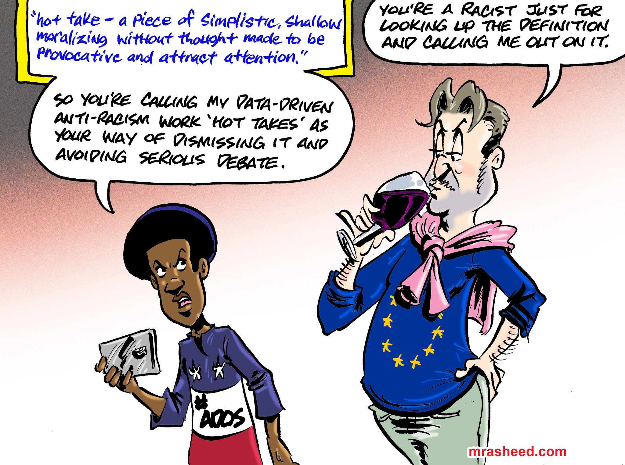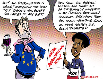 Rasheed, Muhammad. "Discriminating Against Whiteness." Cartoon. The Official Website of Cartoonist M. Rasheed 30 Jan 2021. Pen & ink w/Adobe Photoshop color.