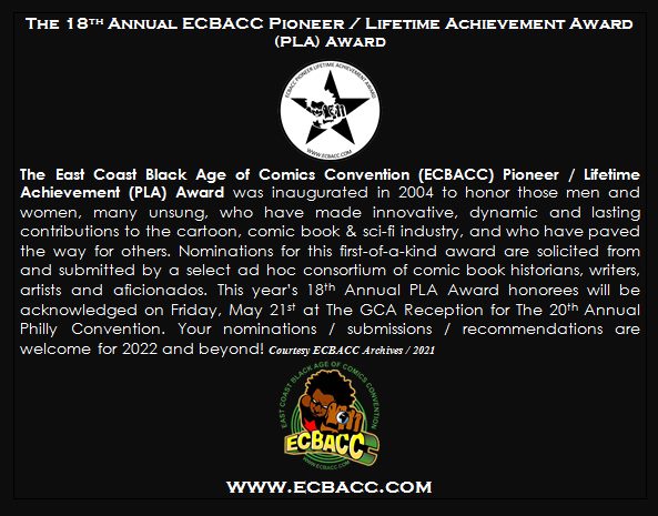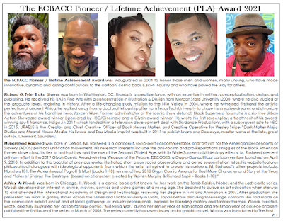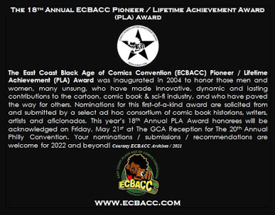 How awesome is THIS surprise award?! Very! I'm not only surprised and thrilled for this great honor, but I am humbled to be in included within this particular badass fire team of honorees. Thank you so much, to the East Coast Black Age of Comics Convention judges!