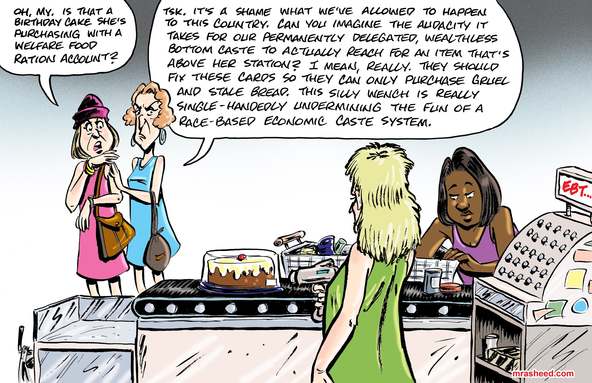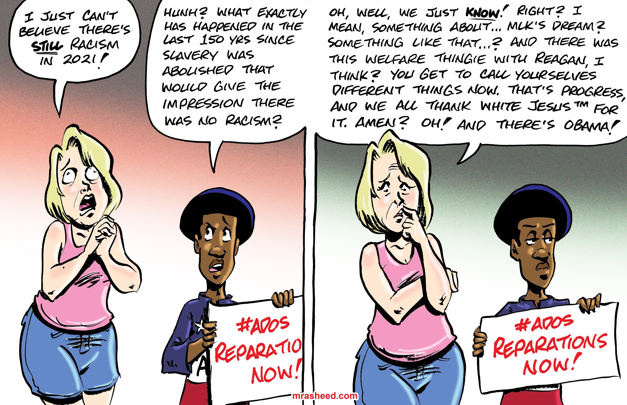 Rasheed, Muhammad. "Common Modern Gripes of the White Racist Aristocracy." Cartoon. The Official Website of Cartoonist M. Rasheed 02 Jan 2021. Pen & ink w/Adobe Photoshop color.