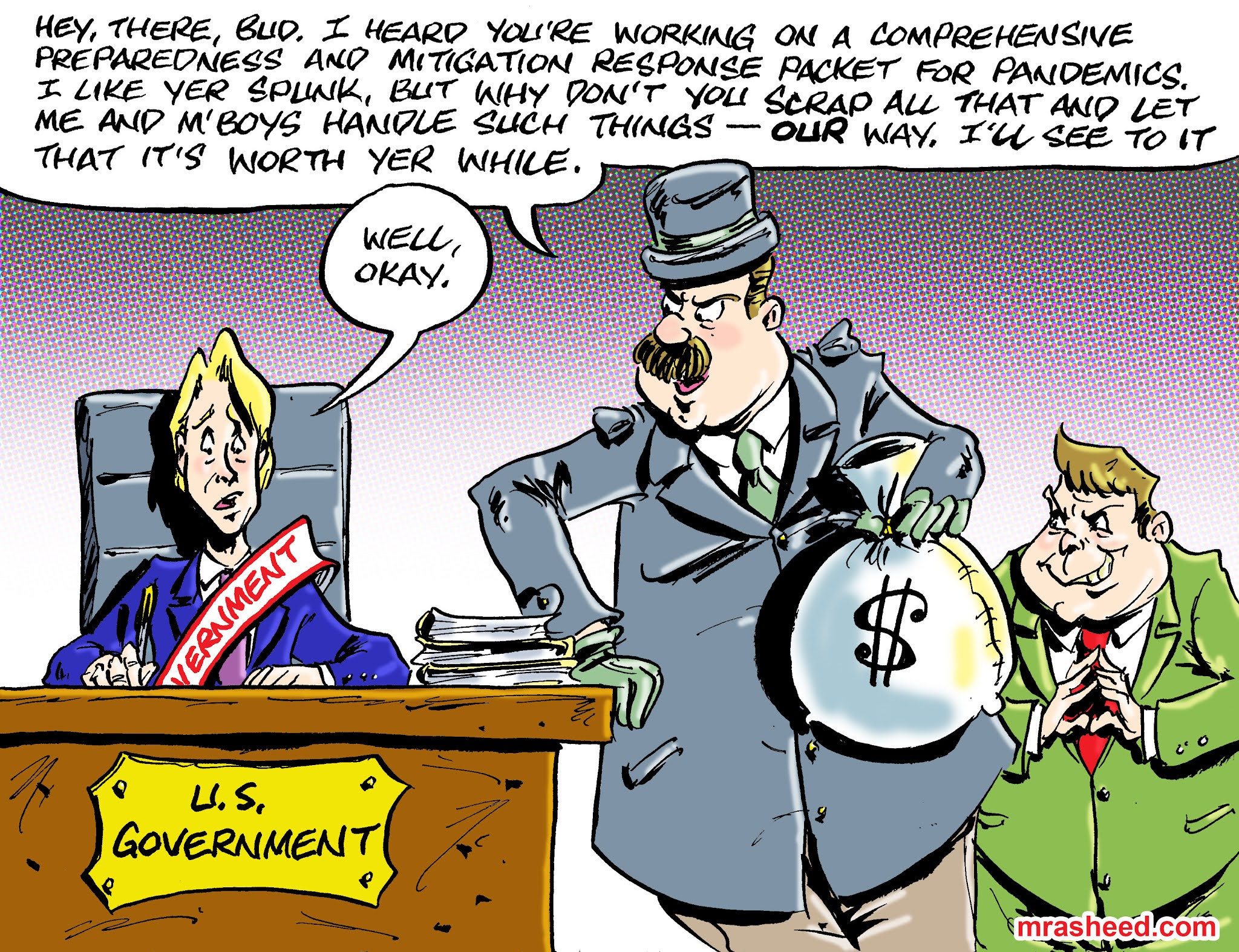Rasheed, Muhammad. "Thriving with Impunity in Controlled Chaos." Cartoon. The Official Website of Cartoonist M. Rasheed 01 Jan 2021. Pen & ink w/Adobe Photoshop color.