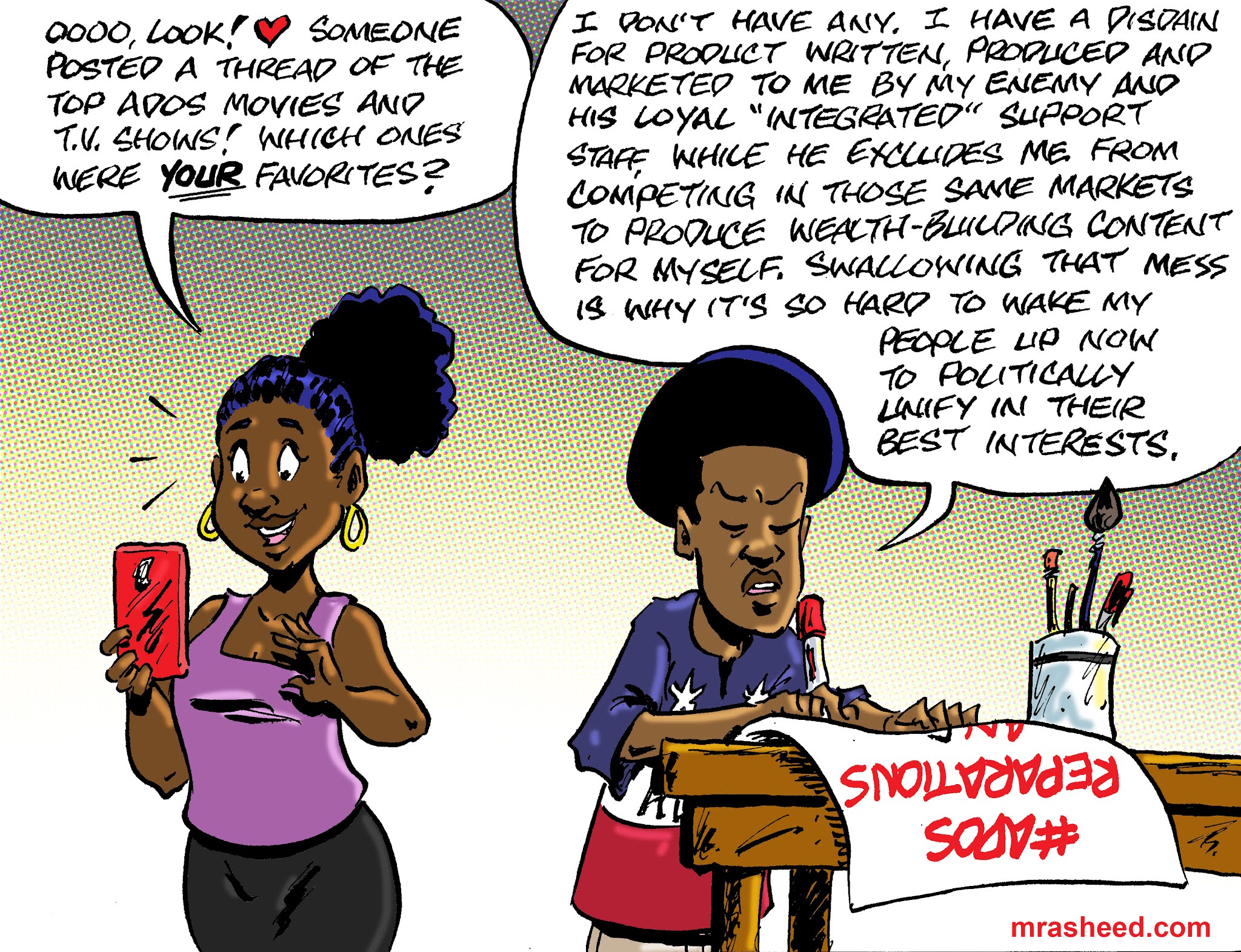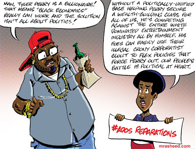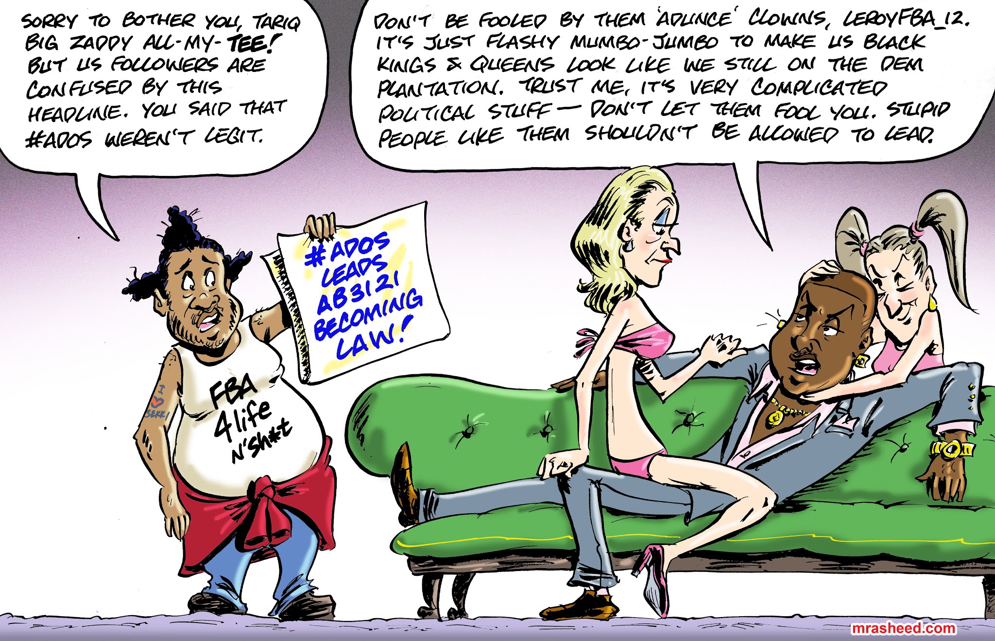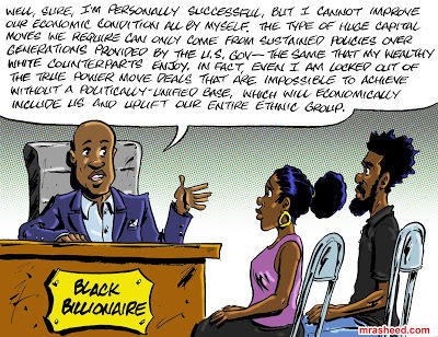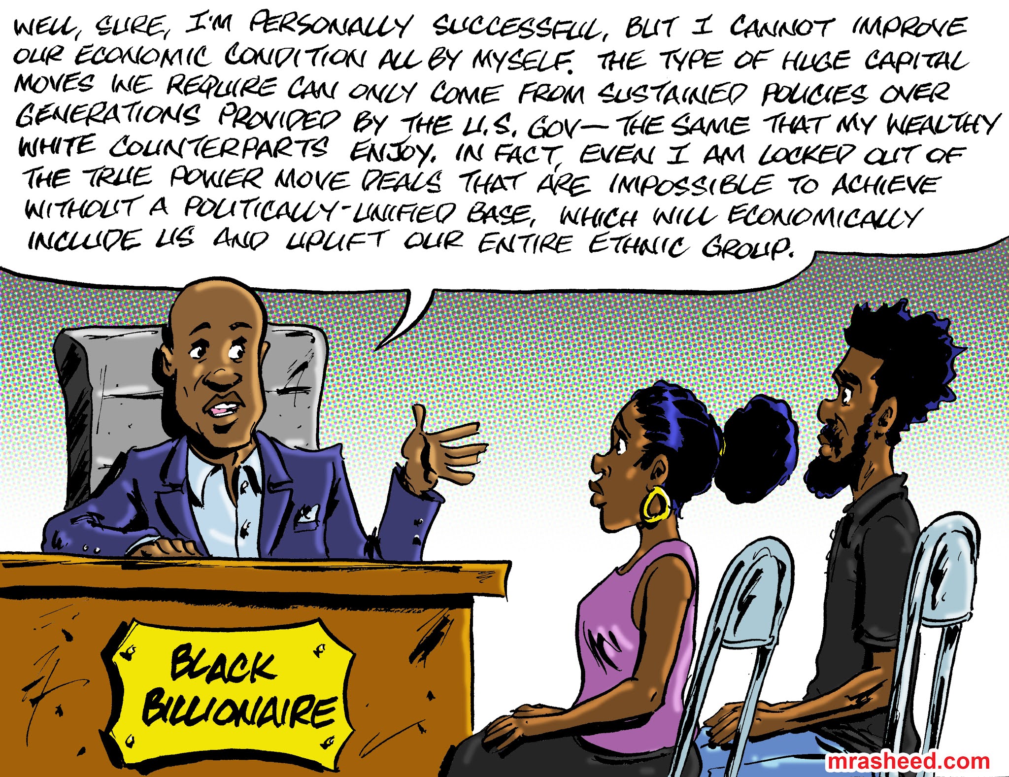 Rasheed, Muhammad. "Group Economic Uplift Comes After Group Political Unity." Cartoon. The Official Website of Cartoonist M. Rasheed 04 Jan 2021. Pen & ink w/Adobe Photoshop color.