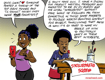 Rasheed, Muhammad. "A Folio of Contrived 'Art' for a Mass Media Manipulated 'Culture'." Cartoon. The Official Website of Cartoonist M. Rasheed 04 Jan 2021. Pen & ink w/Adobe Photoshop color.