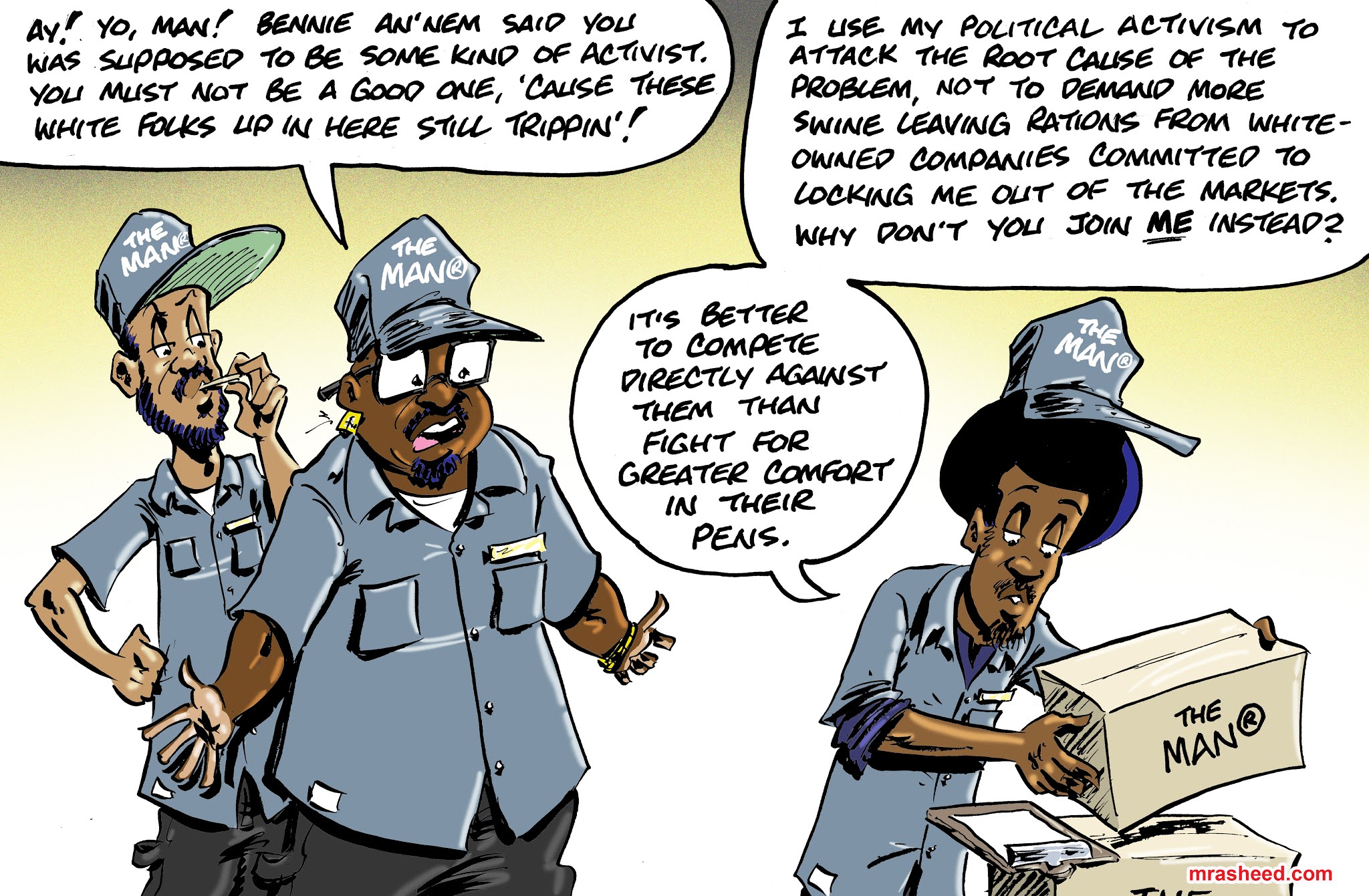 Rasheed, Muhammad. "The Low-Level Glitter of Shameless Coonery Only Beckons You to the Fire." Cartoon. The Official Website of Cartoonist M. Rasheed 15 Dec 2020. Pen & ink w/Adobe Photoshop color.