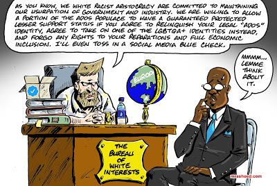 Rasheed, Muhammad. "Back to That 'Normal Racism'." Cartoon. The Official Website of Cartoonist M. Rasheed 08 Dec 2020. Pen & ink w/Adobe Photoshop color.
