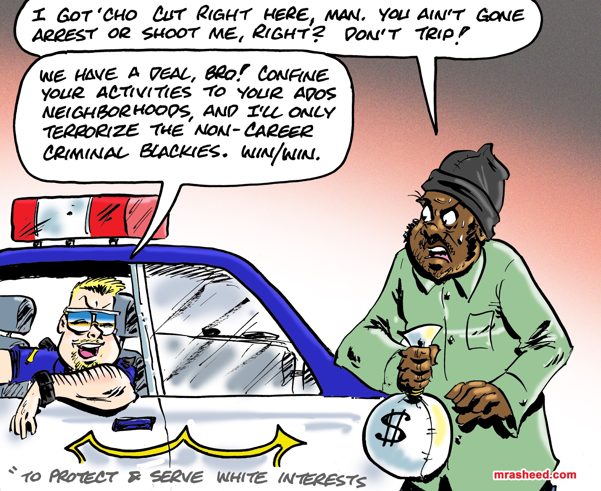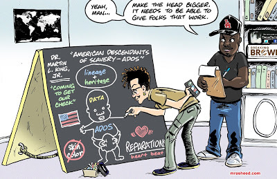 Rasheed, Muhammad. "Retroactive Continuity of Racelessness." Cartoon. The Official Website of Cartoonist M. Rasheed 07 Dec 2020. Pen & ink w/Adobe Photoshop color.