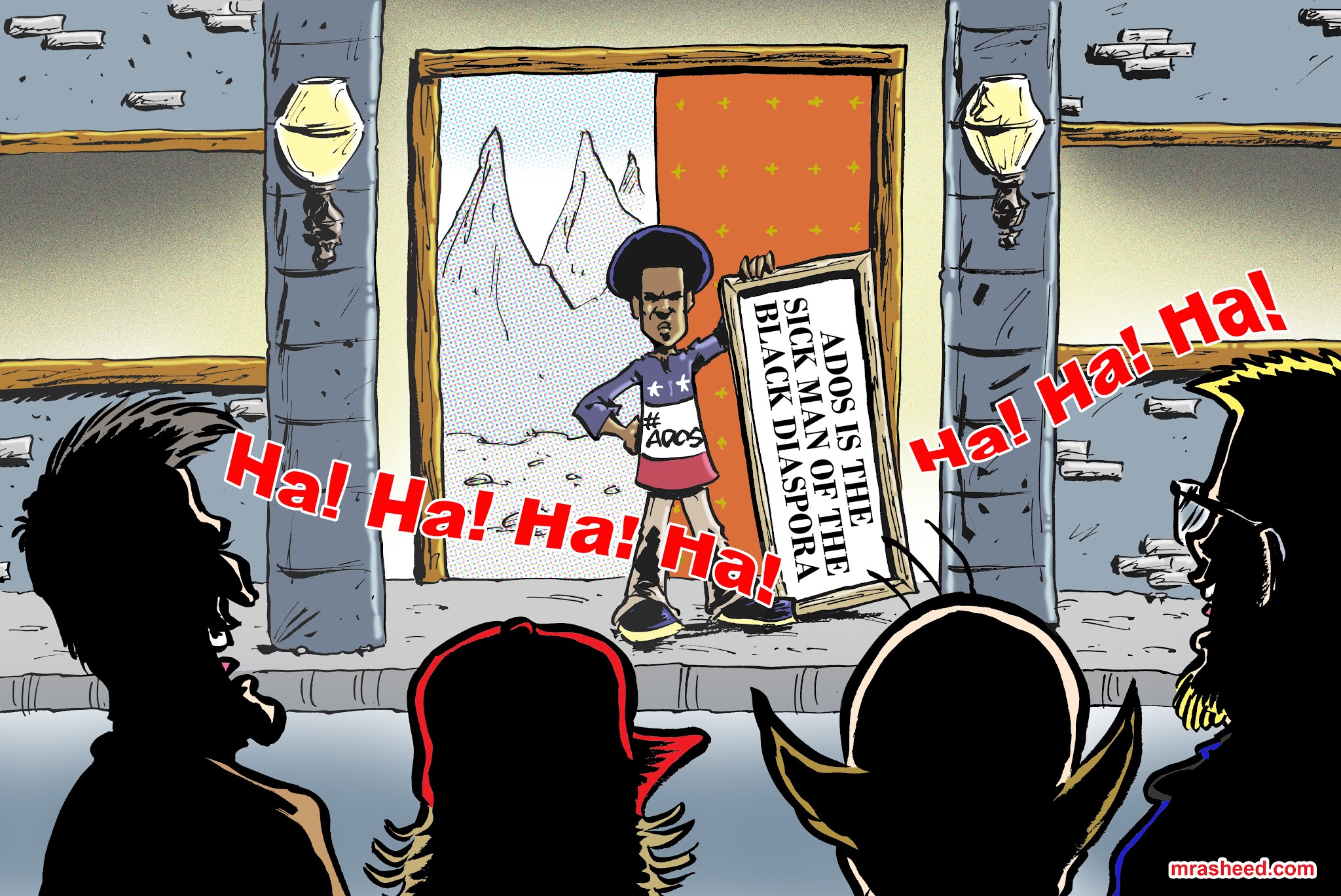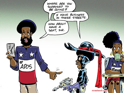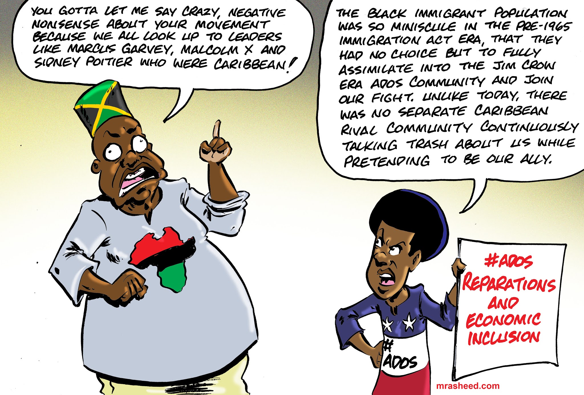 Rasheed, Muhammad. "The Voice of My Enemy Through the Mouth of My Skinfolk Fake Friend." Cartoon. The Official Website of Cartoonist M. Rasheed 22 Nov 2020. Pen & ink w/Adobe Photoshop color.