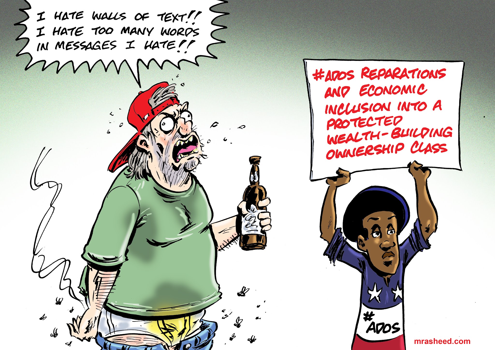 Rasheed, Muhammad. "Attack of the Barely Literate (and Very Racist)." Cartoon. The Official Website of Cartoonist M. Rasheed 23 Nov 2020. Pen & ink w/Adobe Photoshop color.