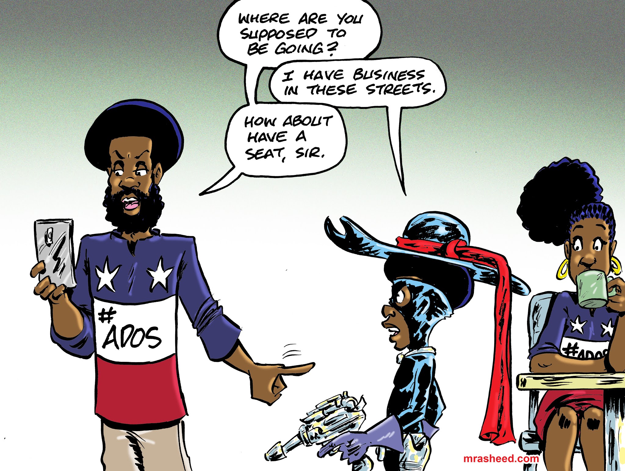 Rasheed, Muhammad. "Foolkiller V: 'Don't do it, son! It ain't worth it!'." Cartoon. The Official Website of Cartoonist M. Rasheed 21 Nov 2020. Pen & ink w/Adobe Photoshop color.