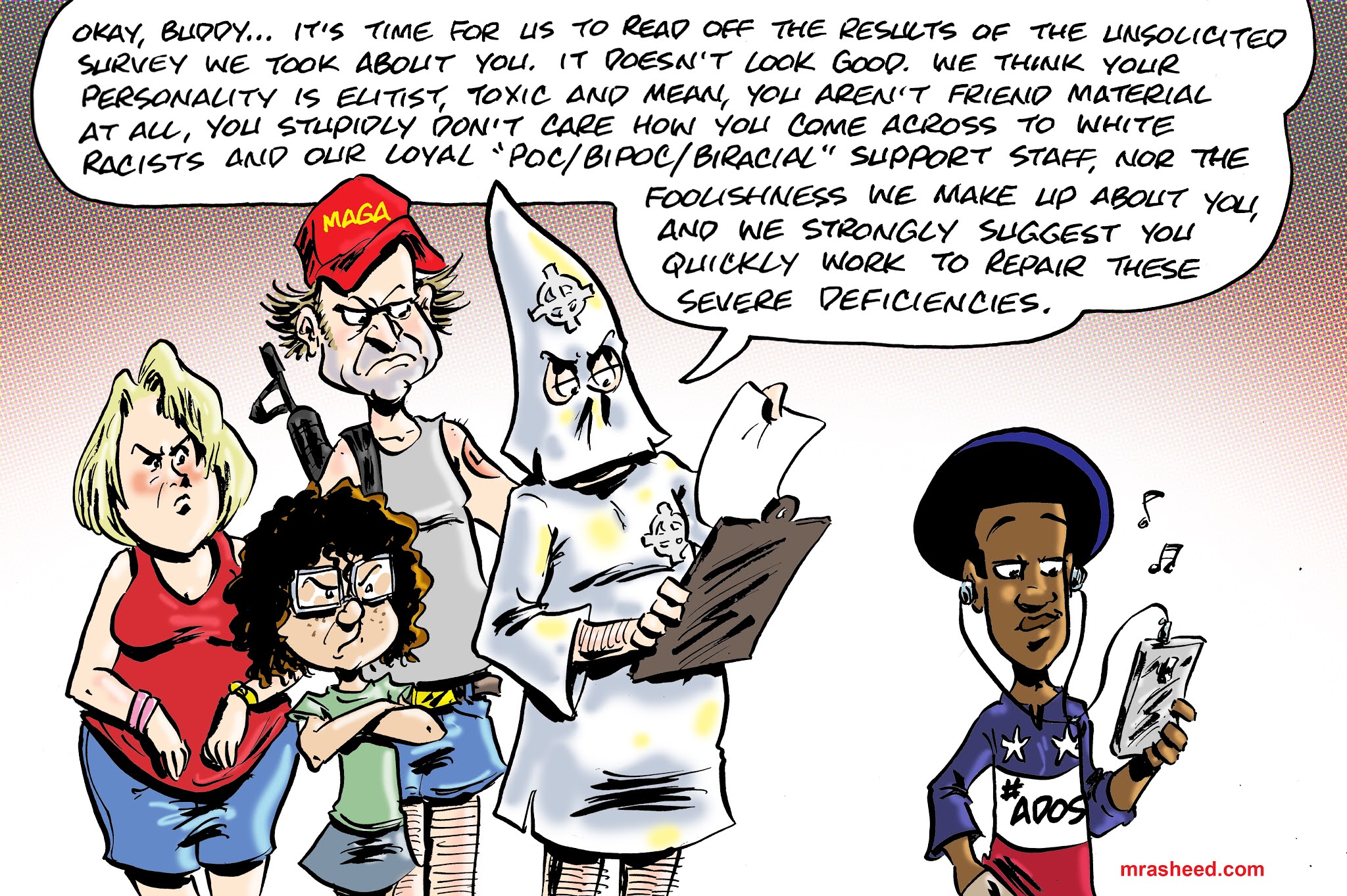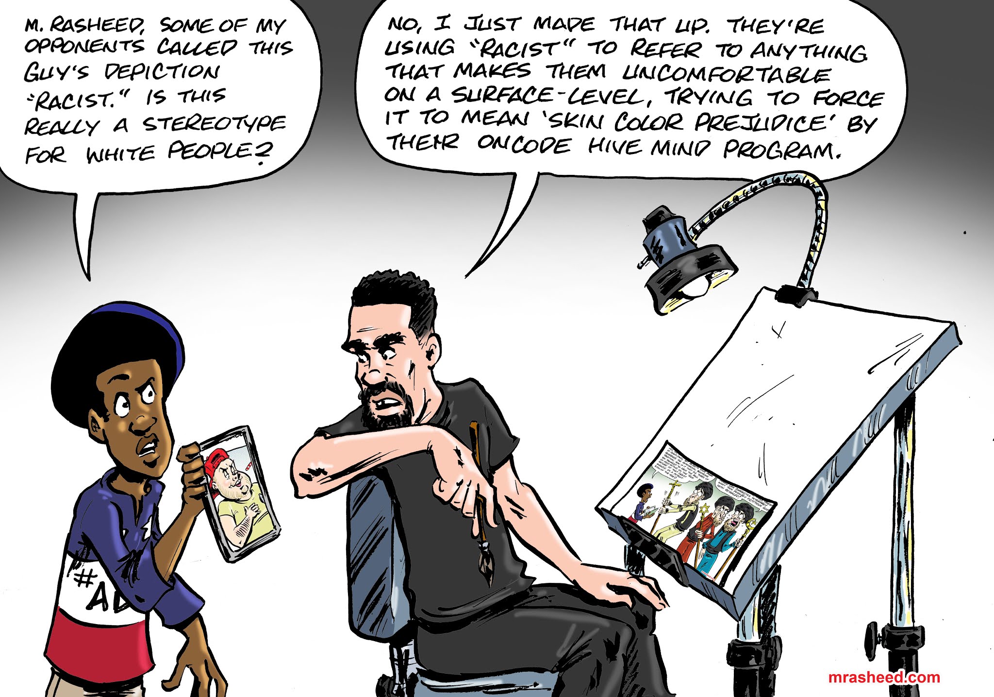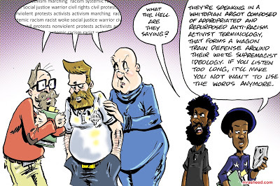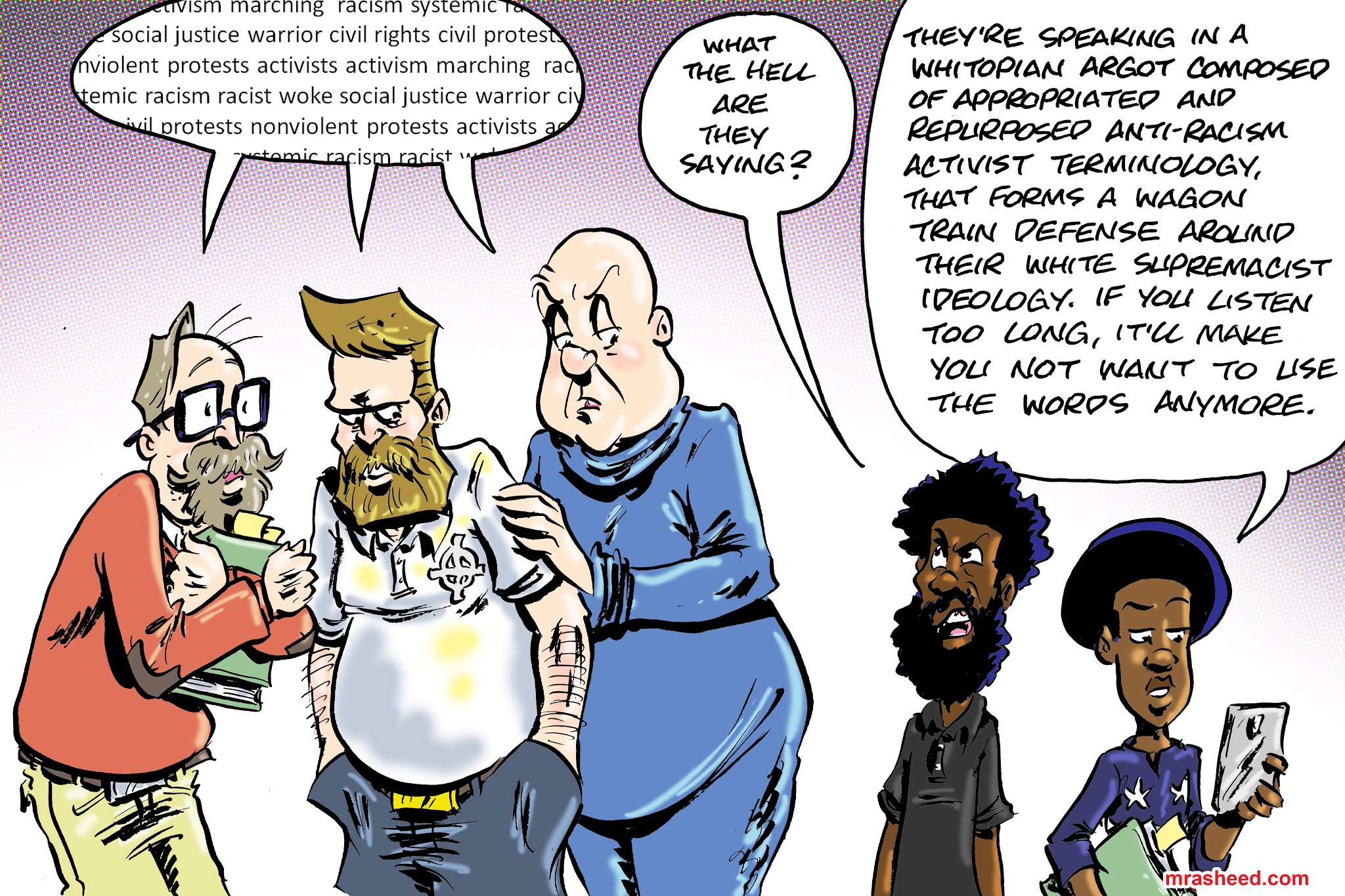 Rasheed, Muhammad. "The Language of Whiteness." Cartoon. The Official Website of Cartoonist M. Rasheed 03 Nov 2020. Pen & ink w/Adobe Photoshop color.
