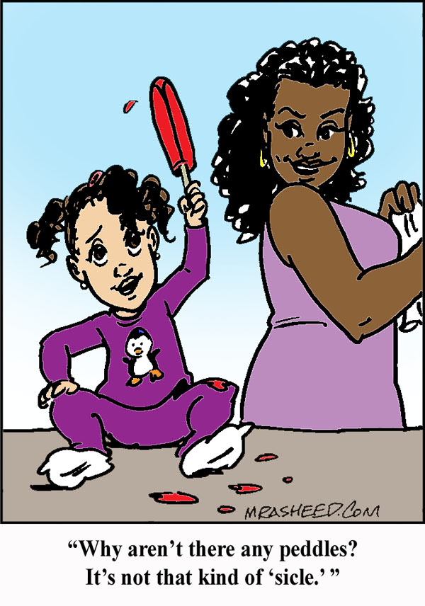 Rasheed, Muhammad. "Grown Up Words." Cartoon. The Official Website of Cartoonist M. Rasheed 09 Apr 2012. Marker w/Adobe Photoshop color. <https://www.mrasheed.com/2012/04/daily-gag-cartoon-29.html>