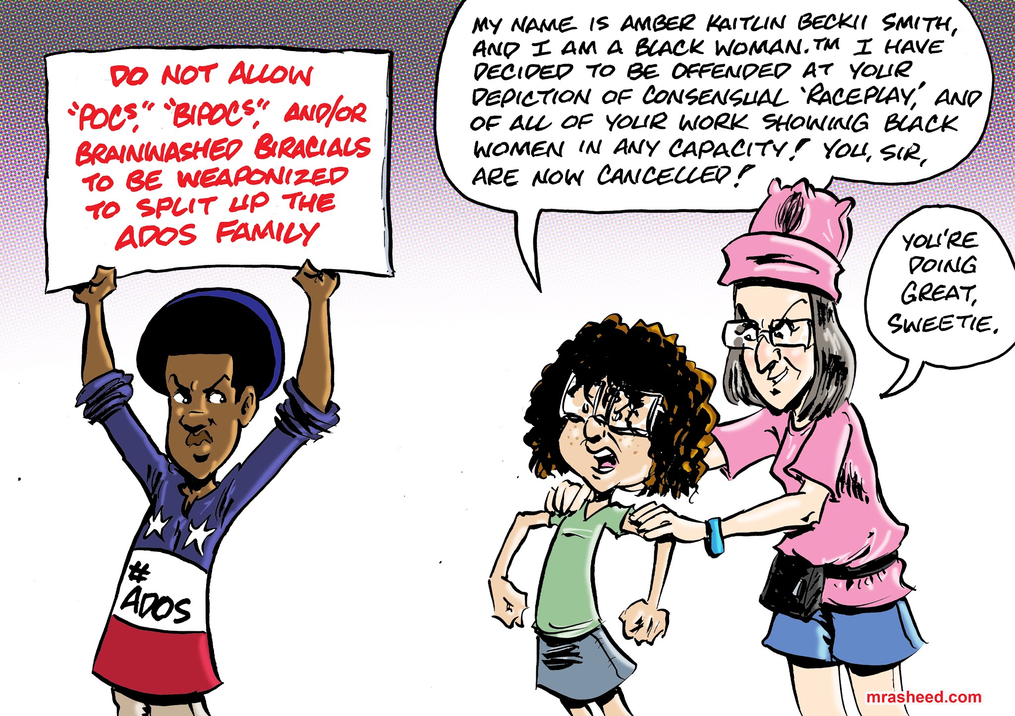 Muhammad Rasheed - The cartoon is based on a real couple, but it isn't their concentual "raceplay" stuff that's the focus of the message, but her outlier status in a thought leader role for Black Americans.
