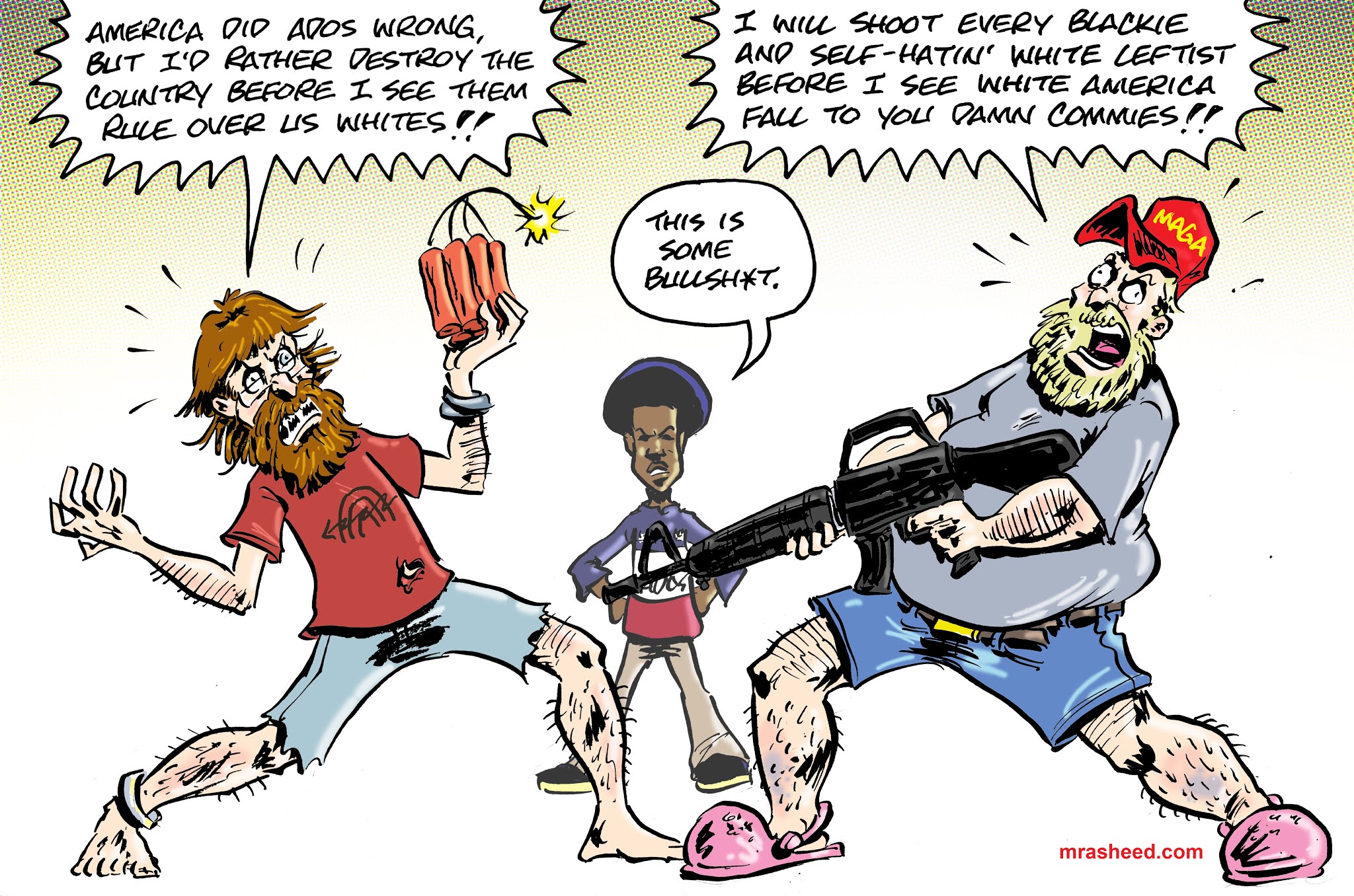 Rasheed, Muhammad. "No Country for Reasonable Men." Cartoon. The Official Website of Cartoonist M. Rasheed 03 Nov 2020. Pen & ink w/Adobe Photoshop color.
