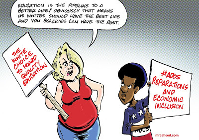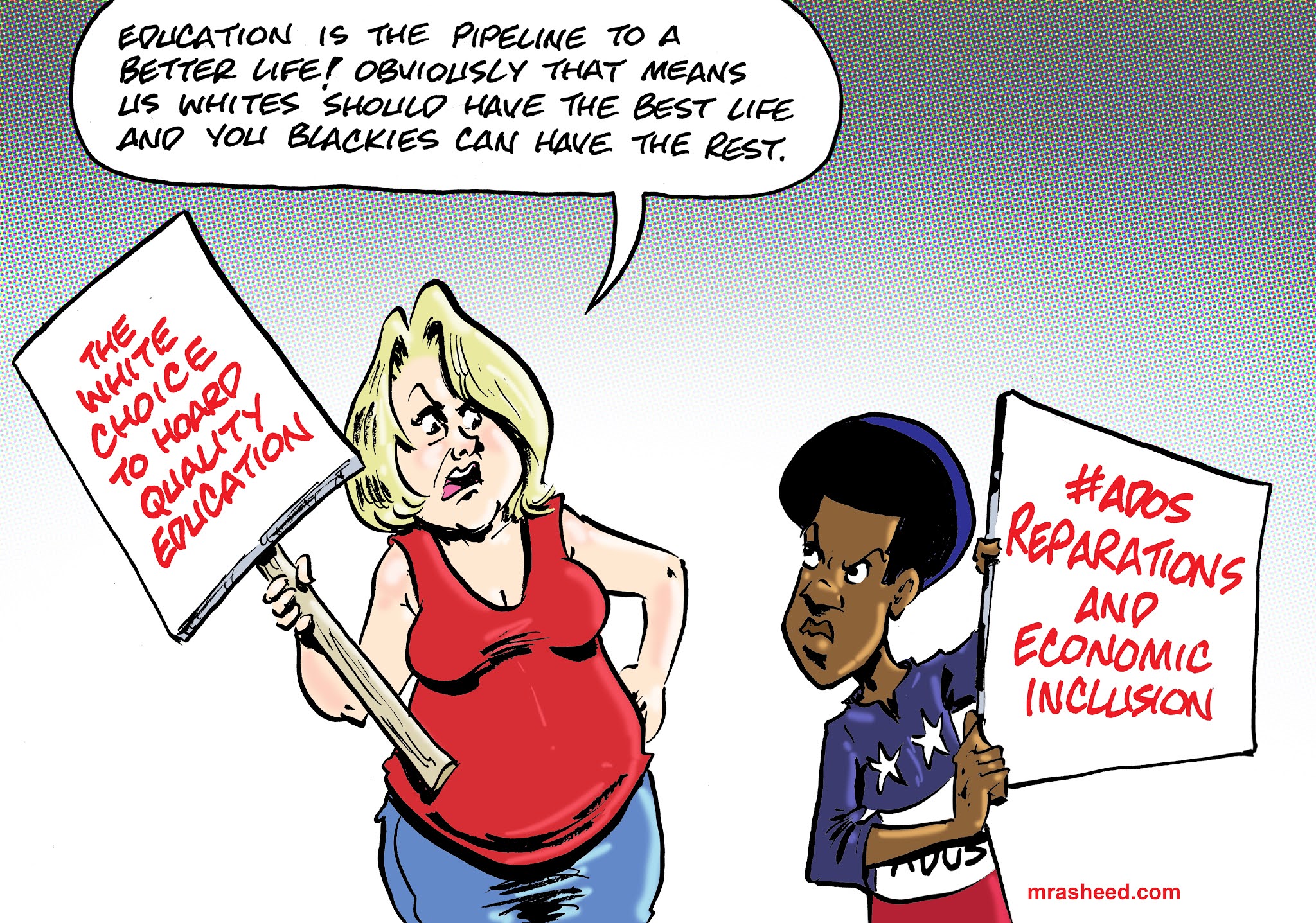 Rasheed, Muhammad. "The Ongoing Race-Based War Over Education." Cartoon. The Official Website of Cartoonist M. Rasheed 06 Nov 2020. Pen & ink w/Adobe Photoshop color.