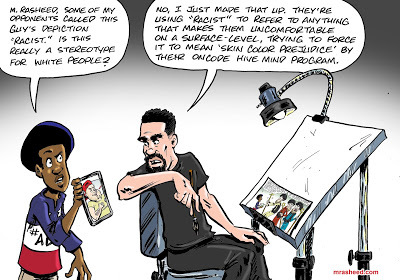 Rasheed, Muhammad. "Political Correctness: Weaponized for Bipartisan Racism." Cartoon. The Official Website of Cartoonist M. Rasheed 08 Apr 2018. Pen & ink w/Adobe Photoshop color. <https://www.mrasheed.com/2018/04/political-correctness-weaponized-for.html>